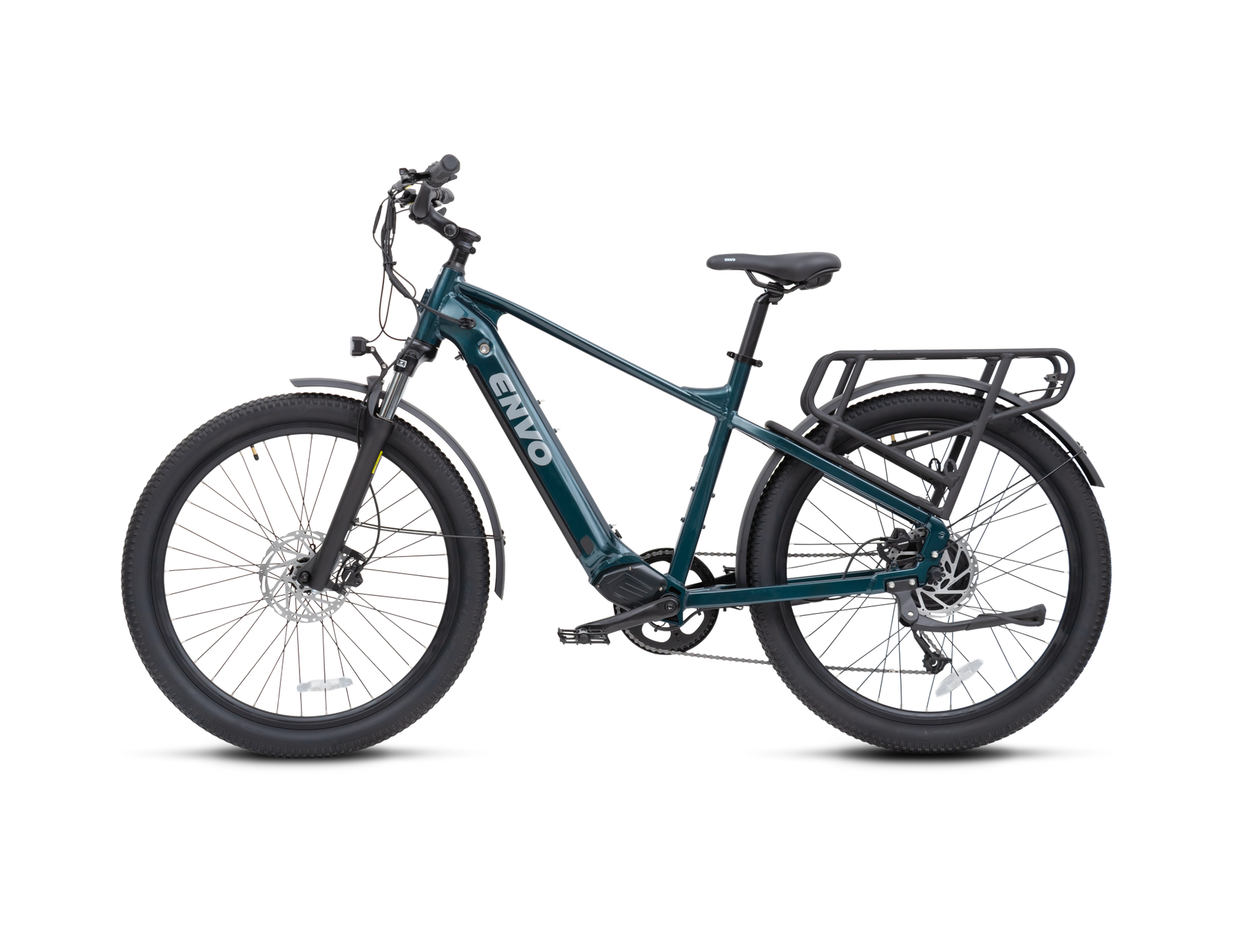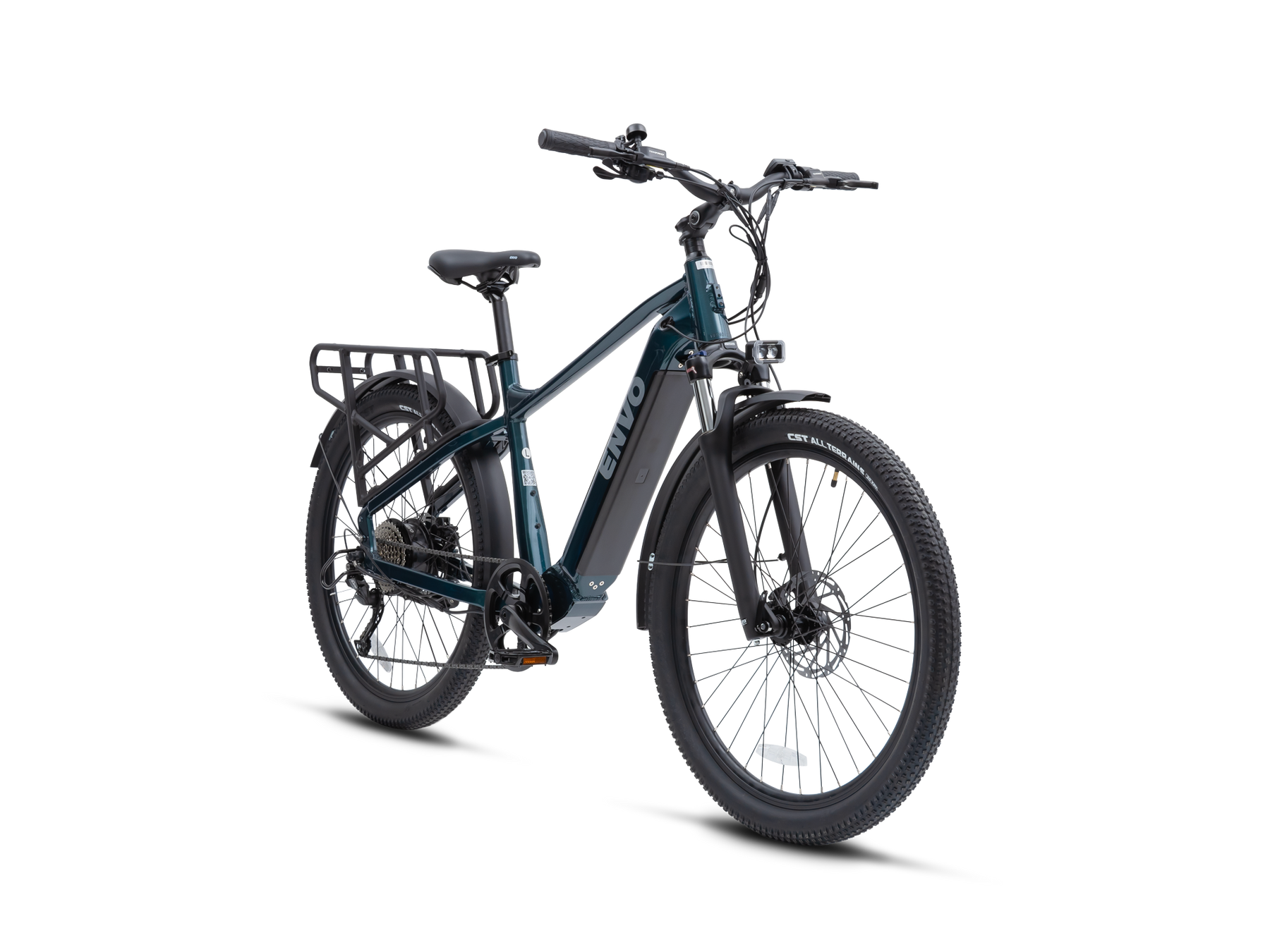 ENVO D50, the ultimate powerhouse e-bike that is both a versatile commuter and a capable cargo carrier. With its rugged and sturdy frame, the D50 is designed to take on any terrain, whether it's a smooth city street or a bumpy off-road trail. Equipped with a powerful 750W electric motor, this e-bike delivers a smooth and effortless ride that will make your daily commute a breeze. And when it's time to run errands or transport cargo you can upgrade to D50's spacious cargo rack and basket making it easy to carry your groceries, tools, or anything else you need.