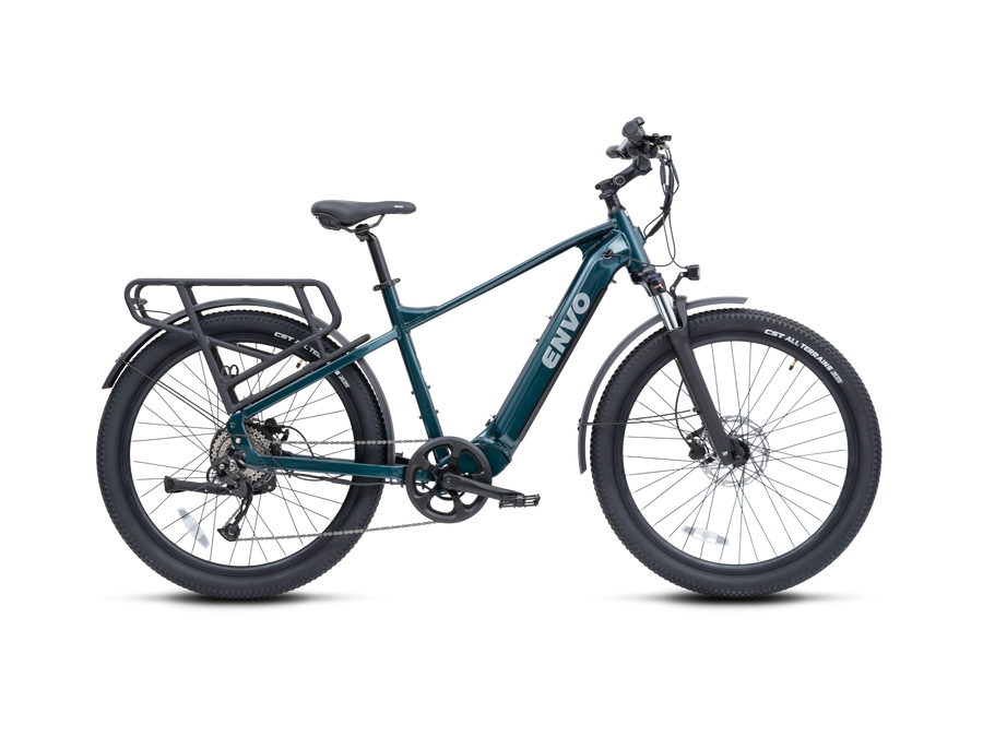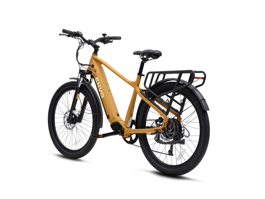 ENVO D50, the ultimate powerhouse e-bike that is both a versatile commuter and a capable cargo carrier. With its rugged and sturdy frame, the D50 is designed to take on any terrain, whether it's a smooth city street or a bumpy off-road trail. Equipped with a powerful 750W electric motor, this e-bike delivers a smooth and effortless ride that will make your daily commute a breeze. And when it's time to run errands or transport cargo you can upgrade to D50's spacious cargo rack and basket making it easy to carry your groceries, tools, or anything else you need.
