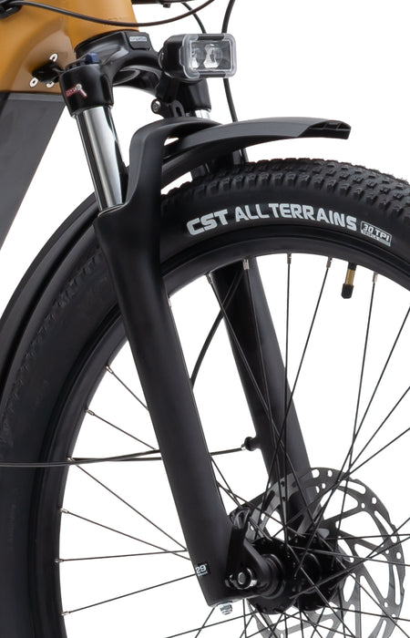 Adjustable, lockable fork with 80mm travel adds to high-speed stability and handling on trails and asphalt. It reduces the shocks to the frame and battery system and provides ultimate comfort.