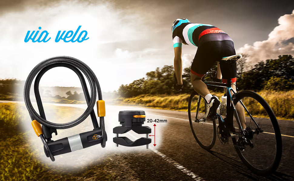 Via Velo 2-in-1 Heavy Duty Bicycle Lock System - 0.55 in (14 mm) Bike U-Lock and 5 ft 10 in (1800 mm) Vandalproof Cable