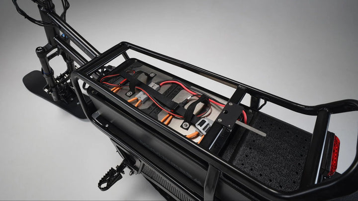 Extend your adventure with MoonBike’s optional dual battery setup, which doubles your ride time up to 3 hours and boosts range up to 64 km. Perfect for backcountry exploration, long resort rides, or professional use, this upgrade ensures you’ll go further without compromise.