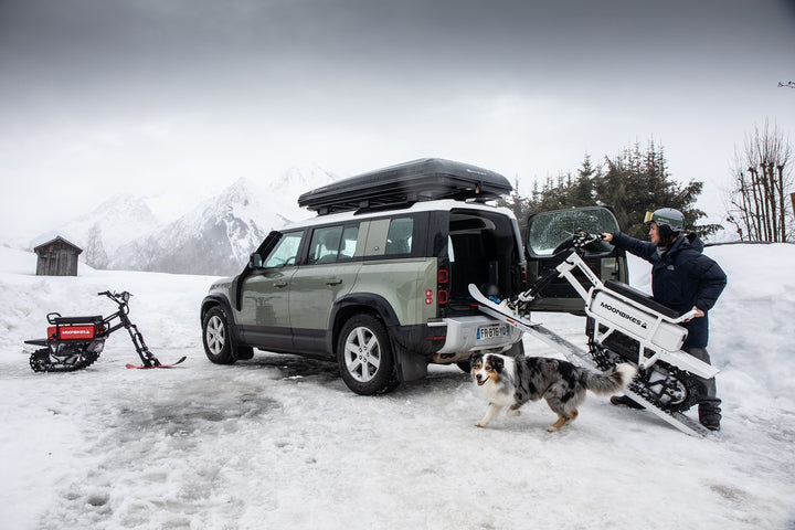 At just 87 kg, MoonBike is the lightest snow vehicle in its class. Its slim, compact frame allows for effortless maneuvering through tight trails, deep snow, or between trees. The lightweight build also makes transportation and storage a breeze. Just load it into a pickup or onto a hitch rack, and you’re ready to ride.