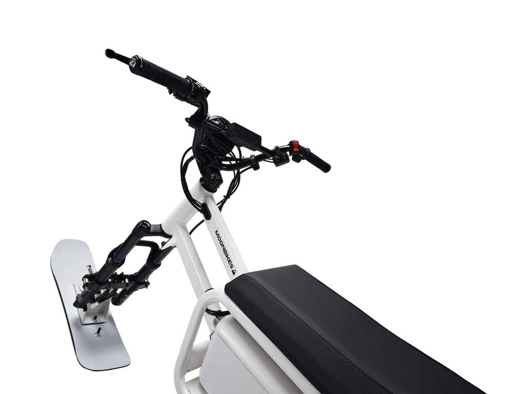 Thanks to its low center of gravity, narrow width (70.5 cm), and optimized weight distribution, MoonBike offers outstanding maneuverability across snow-covered terrain. Whether you're carving through groomed trails or navigating untouched powder, it delivers a responsive and agile ride every time.